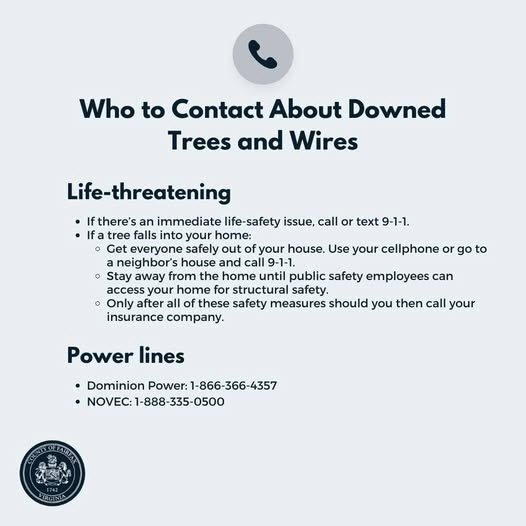*If you see downed power lines, please stay at least 30 feet away from them. Always assume they are energized and dangerous. Report them immediately by calling 1-866-366-4357.
